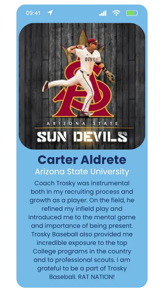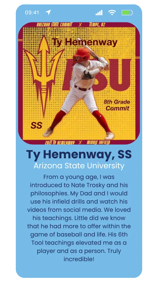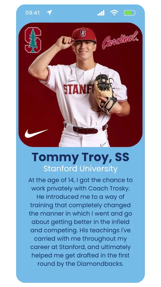 “Trosky showed me how to train at game speed while challenging my footwork, hand actions, and arm angles which played a crucial role in me taking the leap I did.”