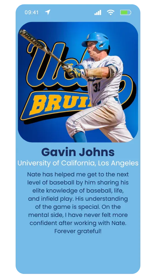 “I was a struggling MLB rookie, but Nate gave me the tools to transform into a defensive standout while bolstering my offensive skills. He simplified my approach while challenging me to work on the plays that made me uncomfortable. My defensive ranking skyrocketed from worst to top-notch, because of a revamped mindset & intensive training.”