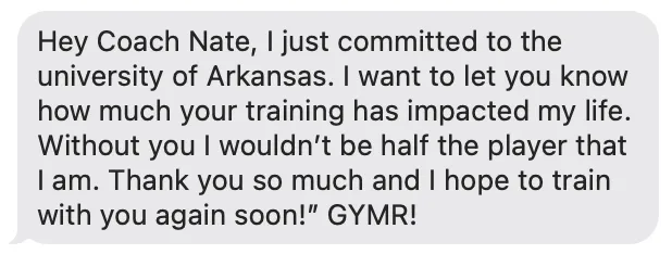 Nate is a very passionate and invested teacher. He has the unique ability to draw visual pictures with his communication to help the player understand a skill. Most importantly, Nate is teaching for the right reasons, he has a passion for players and coaches and their growth mentally and physically. I really enjoy what he does and how he does it.