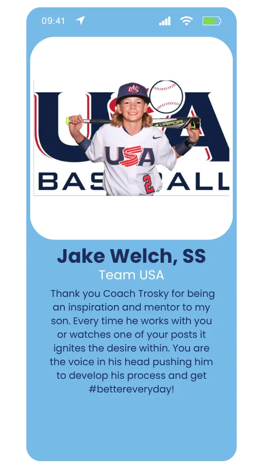 Becoming a prospect, a recruit, or an all-star begins by tracking consistency of small daily commitments. The “exit velocity” narrative says it’s brute strength, which helps. Winning the daily disciplines matters most for long-term success. Trosky 365 app measures it. The Virtual Academy gives families the peace of mind that their child is being guided every day, with purpose and proven structure.