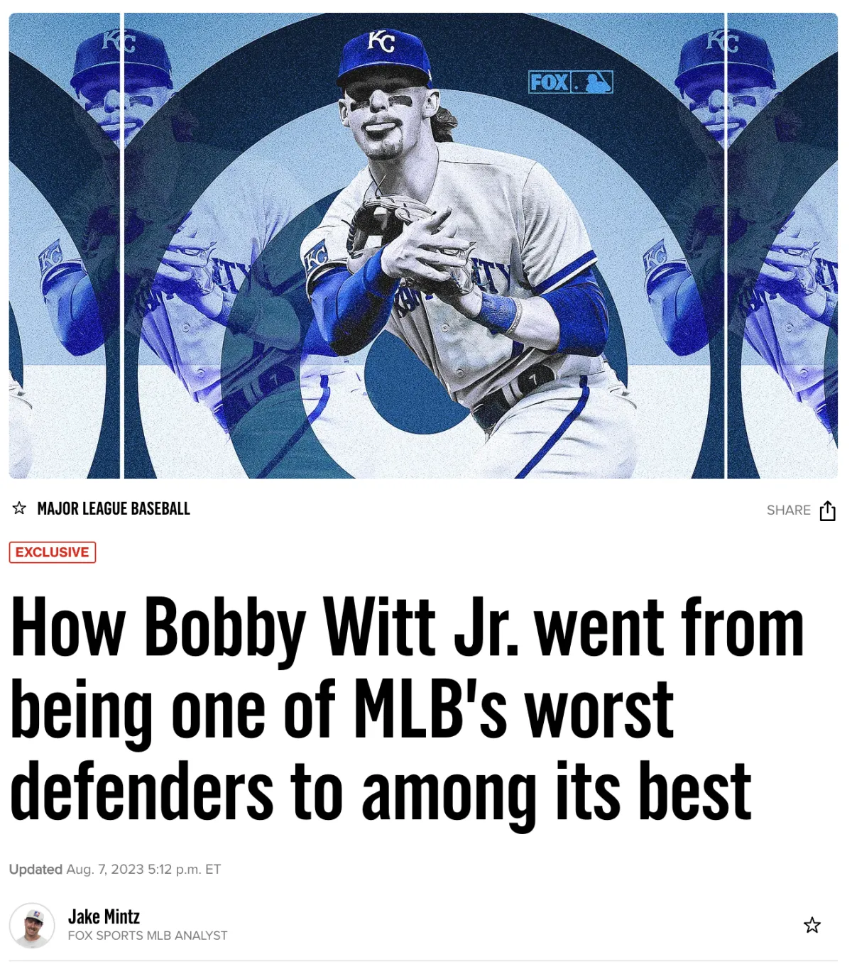 After finishing 2022 as a first-percentile defender per outs above average — that's the worst one could rate, to be clear — Witt currently ranked in the 99th percentile by the same metric midway through 2023.